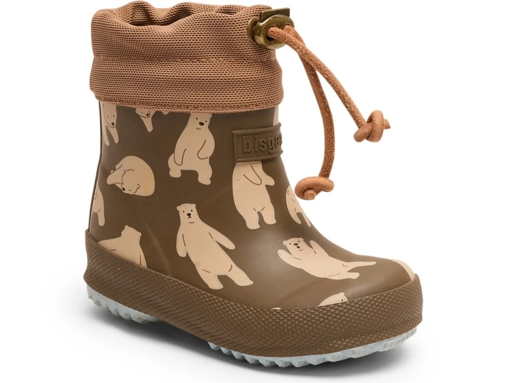 Bisgaard Baby thermo vintergummistøvle brun med bjørneprint og uldfoer