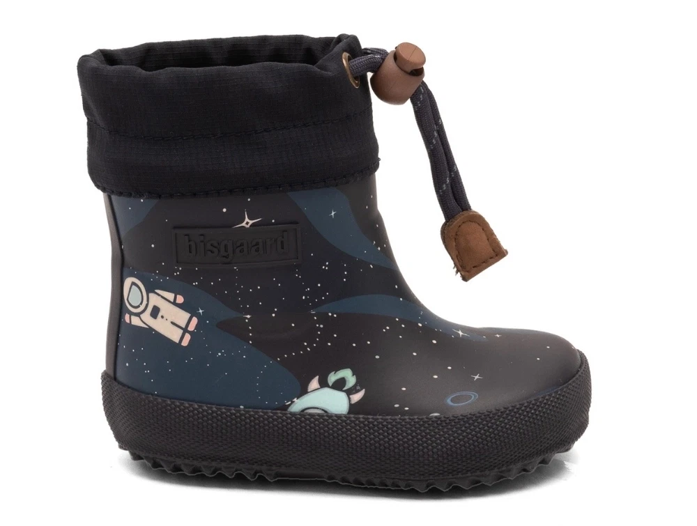 Bisgaard Baby Thermo vintergummistøvle blå med space explorer print og uldfoer