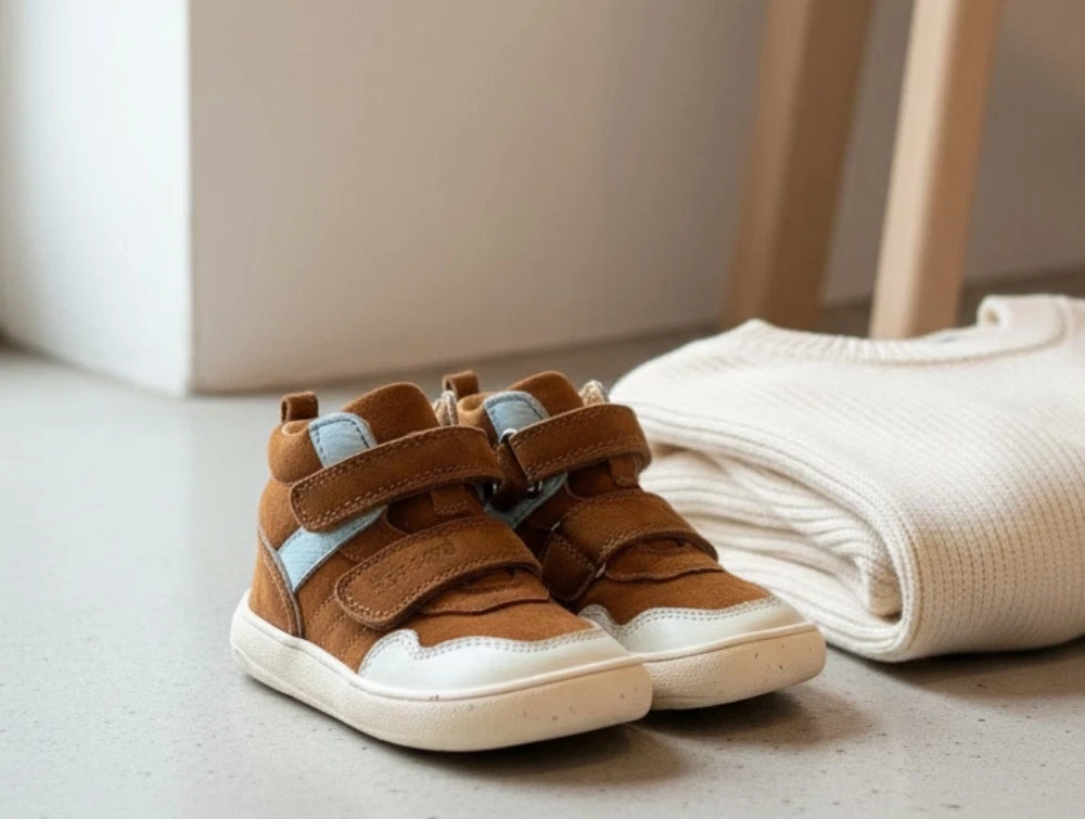 En barfodssko er designet til at efterligne det at gå barfodet. Den har en tynd og fleksibel sål uden hældrop, så foden arbejder naturligt. Den brede tåboks giver tæerne plads til at sprede sig, og konstruktionen understøtter barnets balance og bevægelsesfrihed.