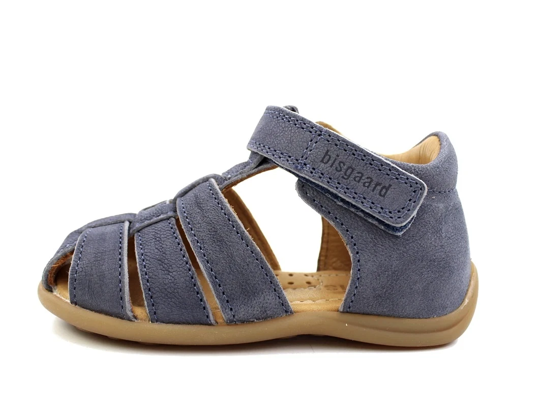 Støvet blå sandaler fra Bisgaard. Sandalen lukkes nemt med velcro.