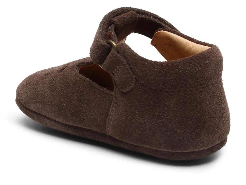 Bisgaard Bloom hjemmesko mørkebrun ruskind med velcro