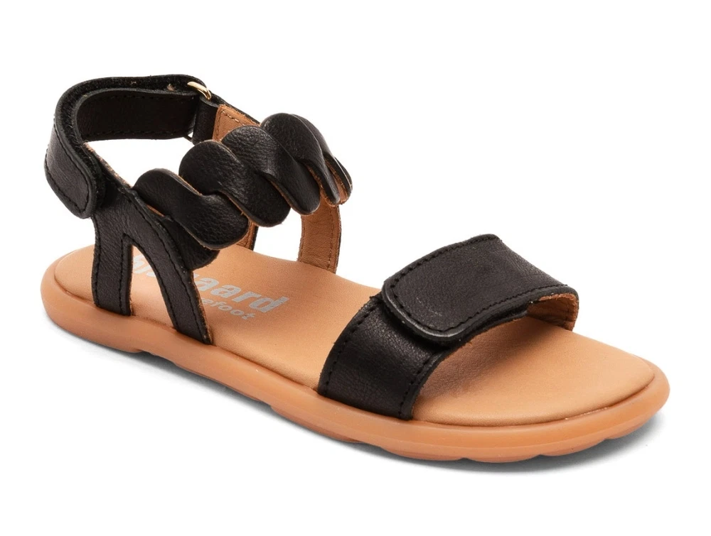 Bisgaard Cille sandal i sort læder med flettet detalje