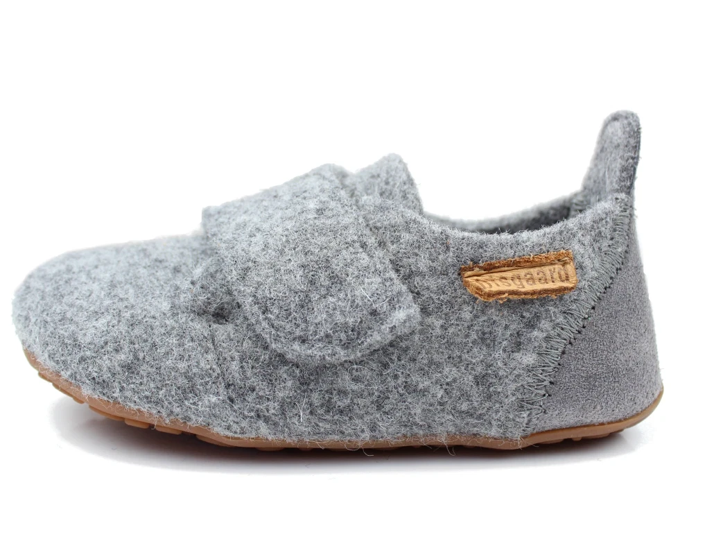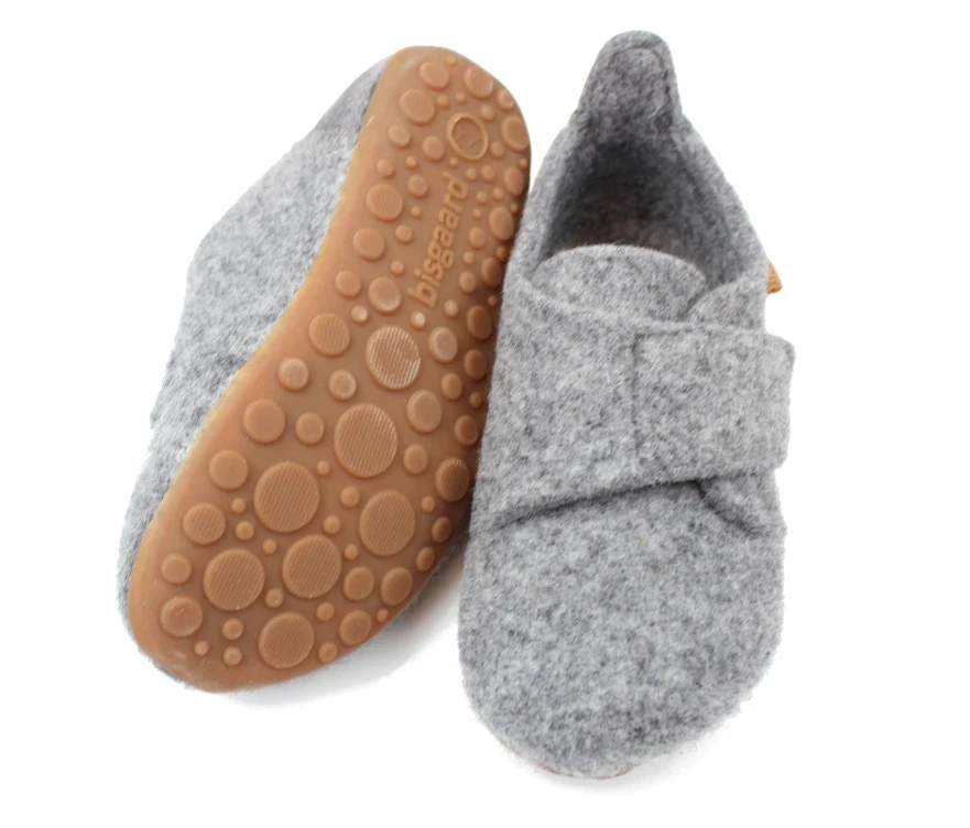 Bisgaard hjemmesko grey med velcrohjemmesko grå uld bisgaard