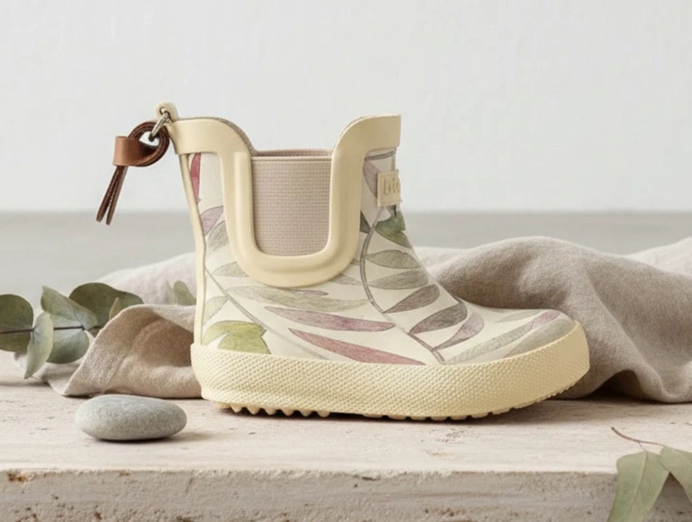 Korte gummistøvler med bladprint fra Bisgaard.