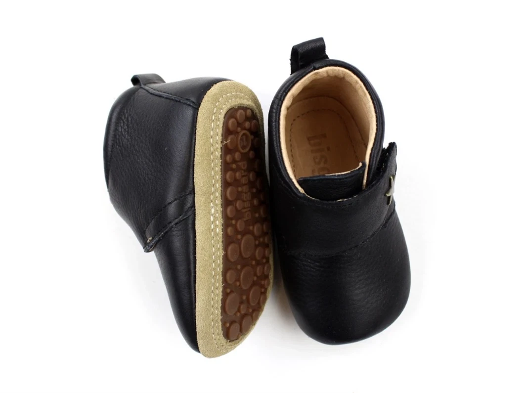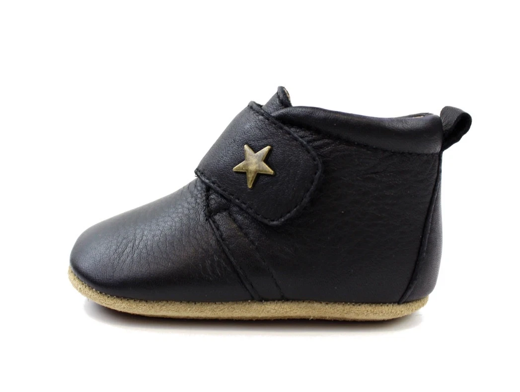 Sorte skindhjemmesko fra Bisgaard med lille metalstjerne.