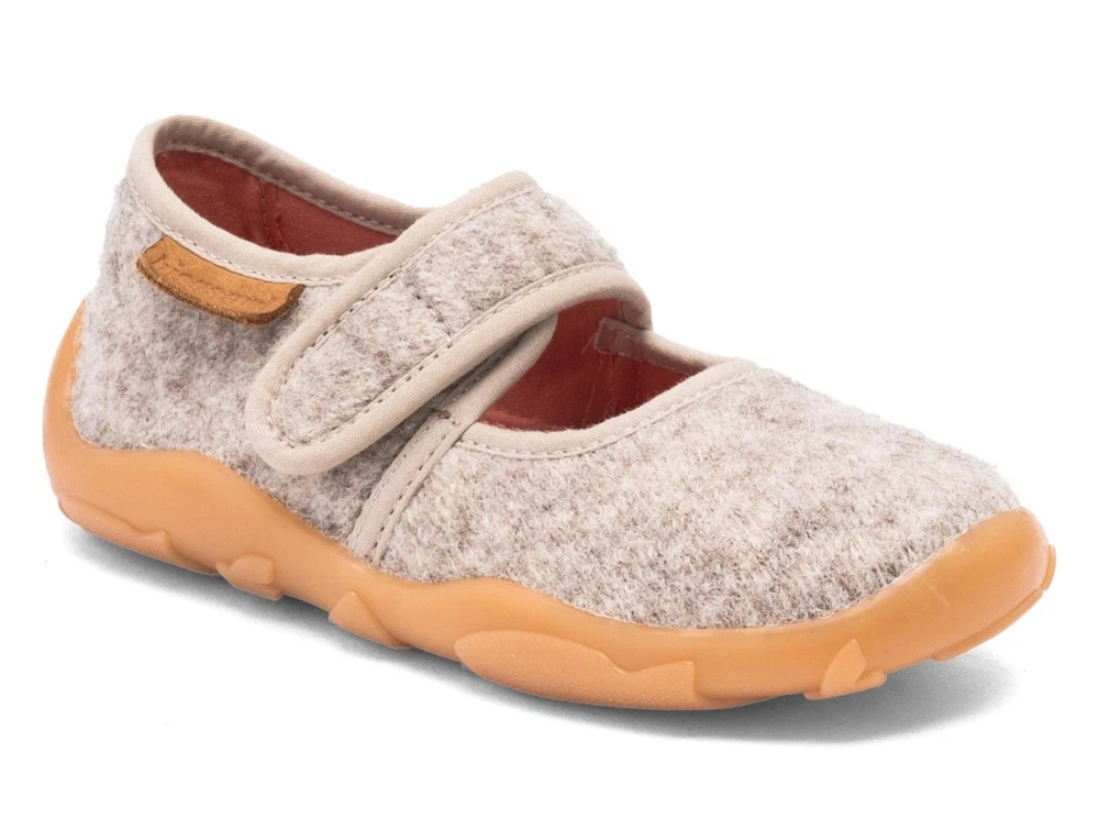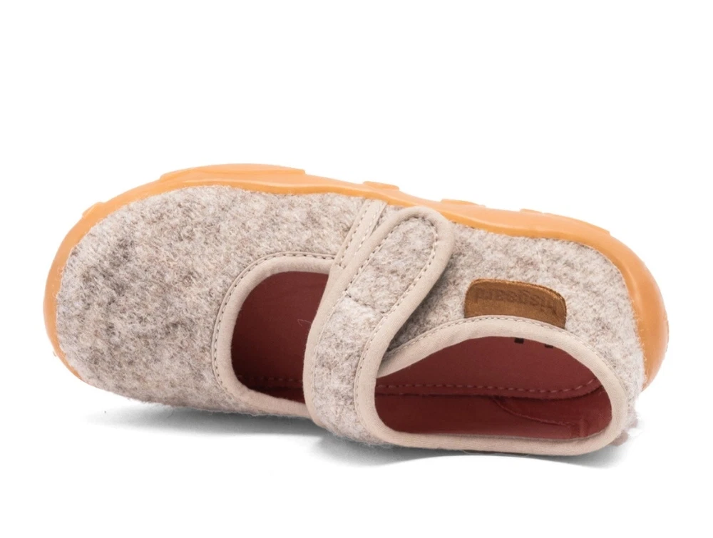 Bisgaard Maddy hjemmesko sandfarvet uld med velcro