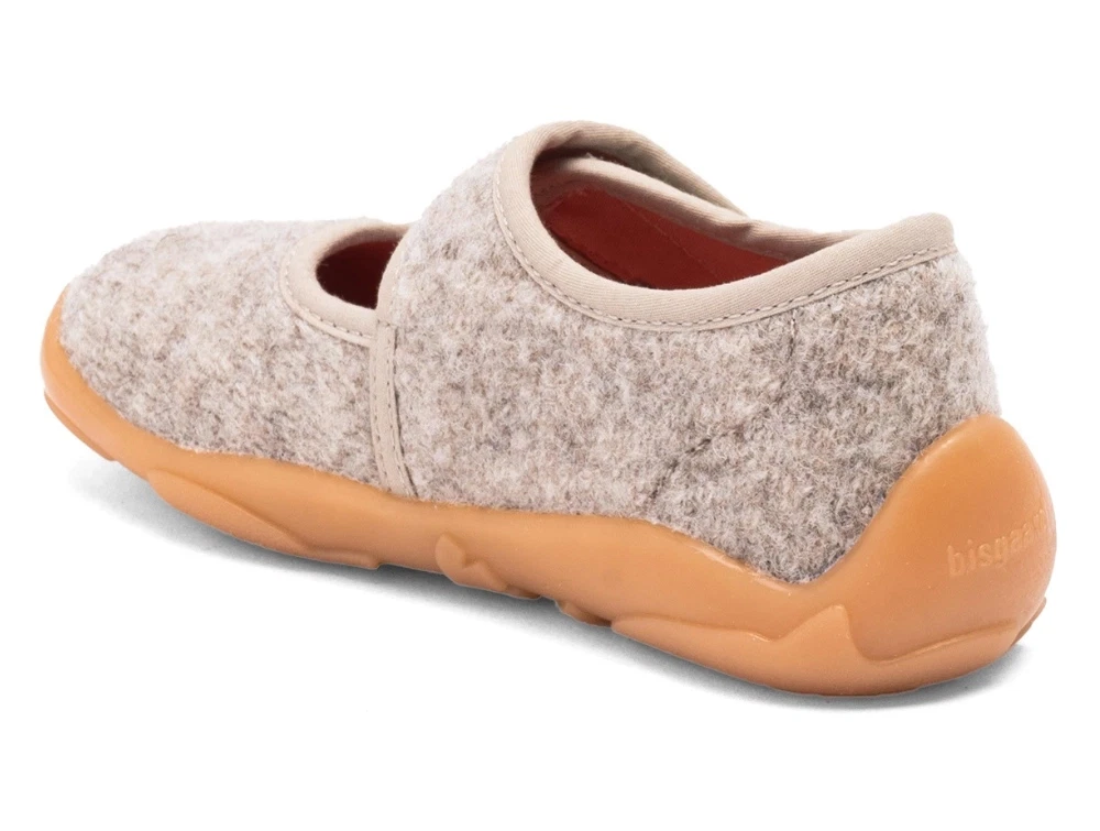 Bisgaard Maddy hjemmesko i sandfarvet uld med velcro