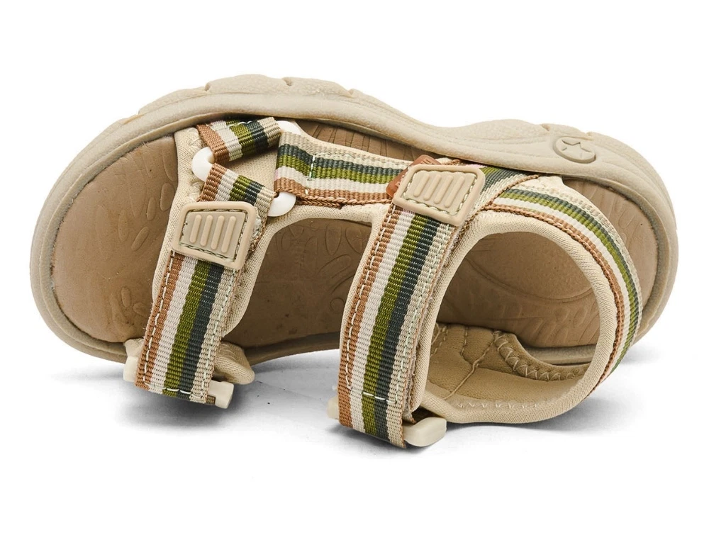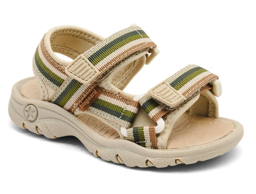 Bisgaard Nico sandal i beige med grønne striber og velcro