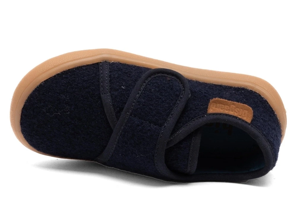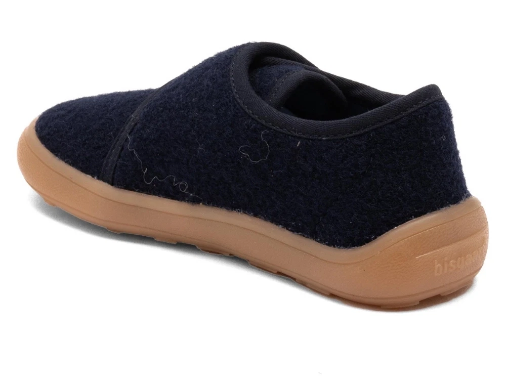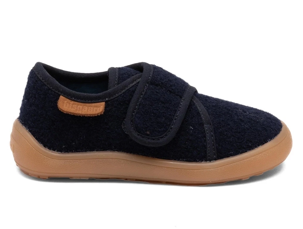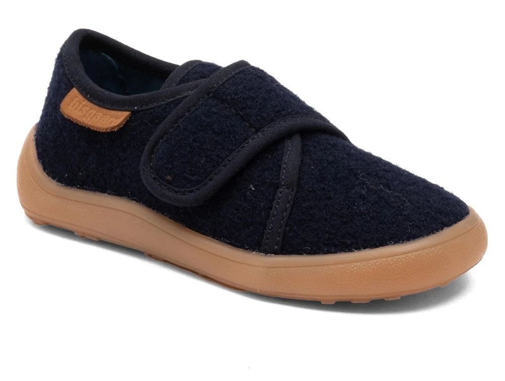 Bisgaard Pav hjemmesko mørkeblå uld med velcro og gummisål