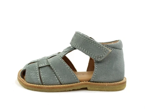 Sandal i farven sage i ruskind fra Bisgaard. Sandalen lukkes nemt med velcro.