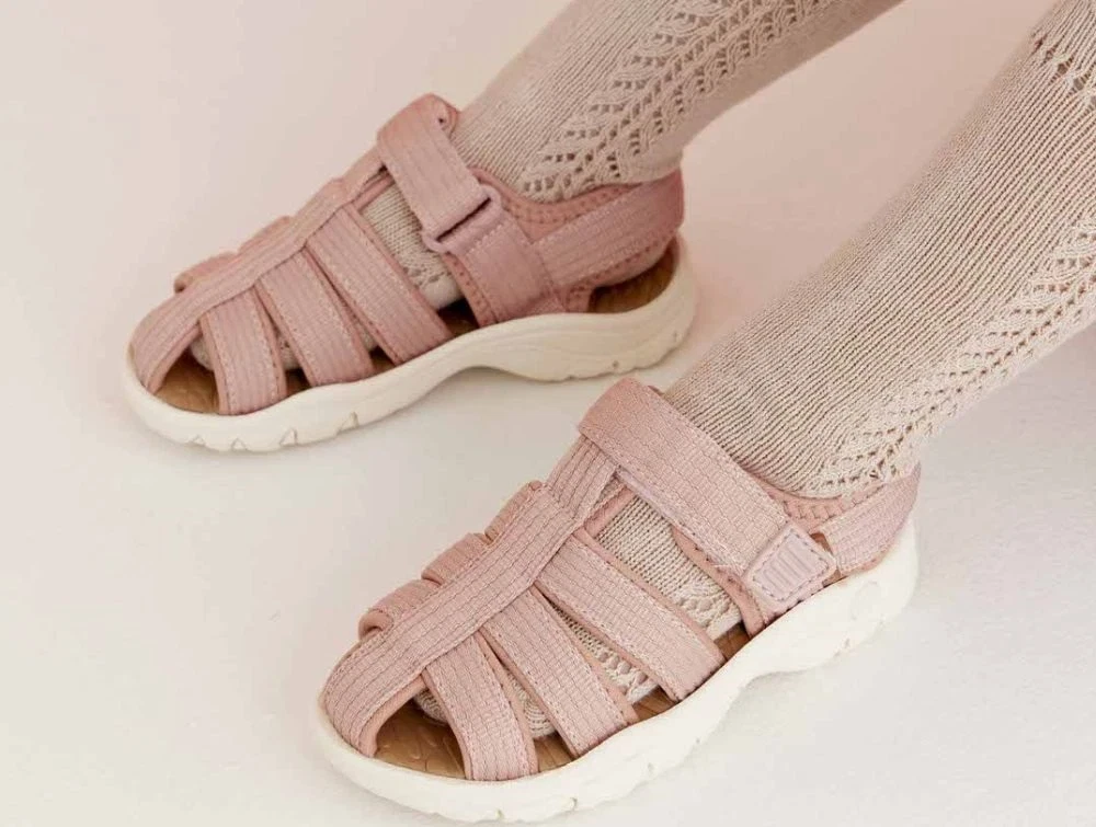 Let sandal fra Bisgaard i rosa genanvendt tekstil med fleksibel letvægtssål og lukket tå.
