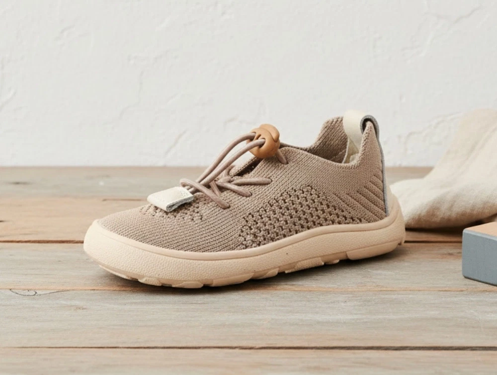 Skoene er meget lette og er udviklet med fokus på naturlig bevægelse og komfort. Den flade sål uden hældrop hjælper barnet med at bevare en naturlig gang, mens den brede tåboks giver tæerne god plads til at bevæge sig frit. Den fleksible gummisål giver et stabilt fodfæste, og elastiksnøren gør skoen hurtig at tage af og på.