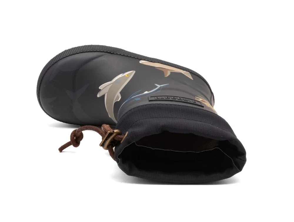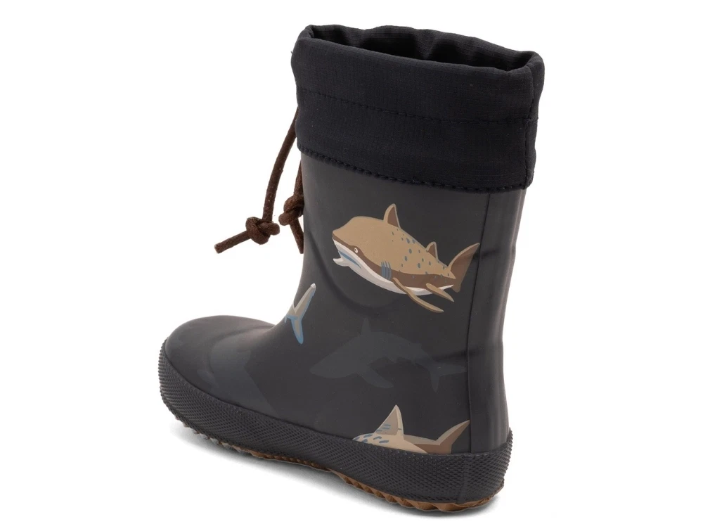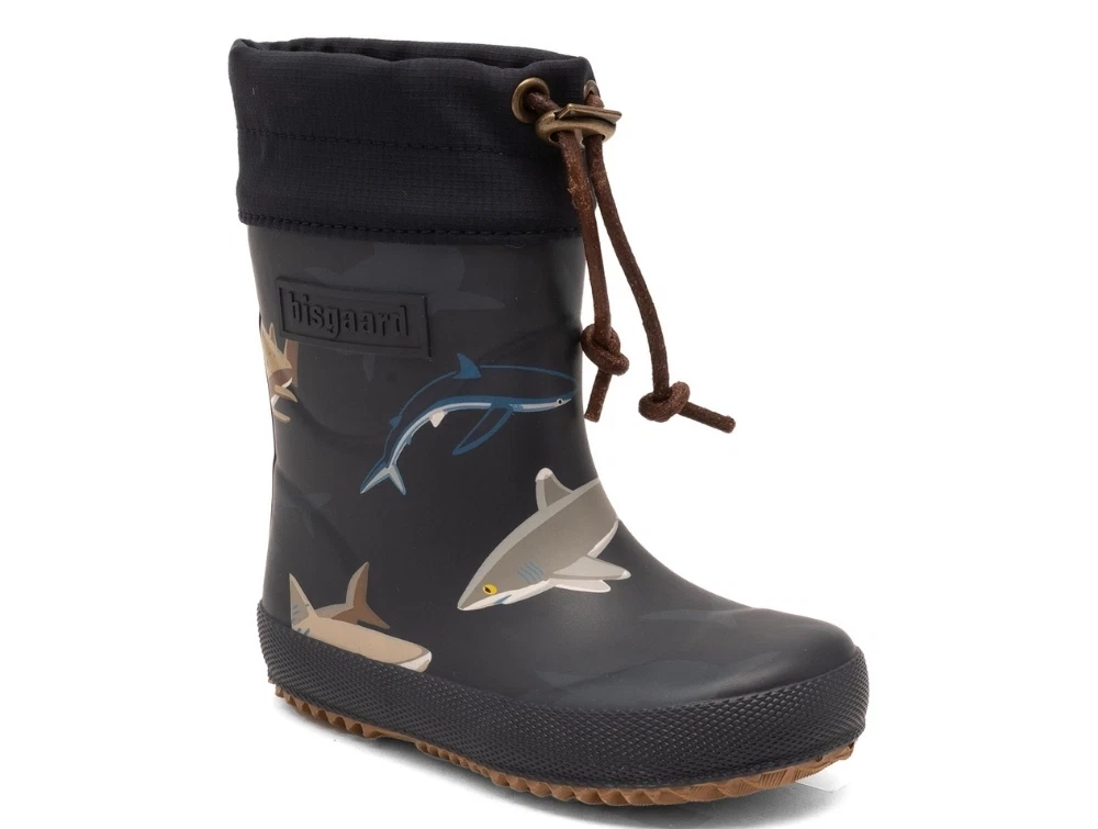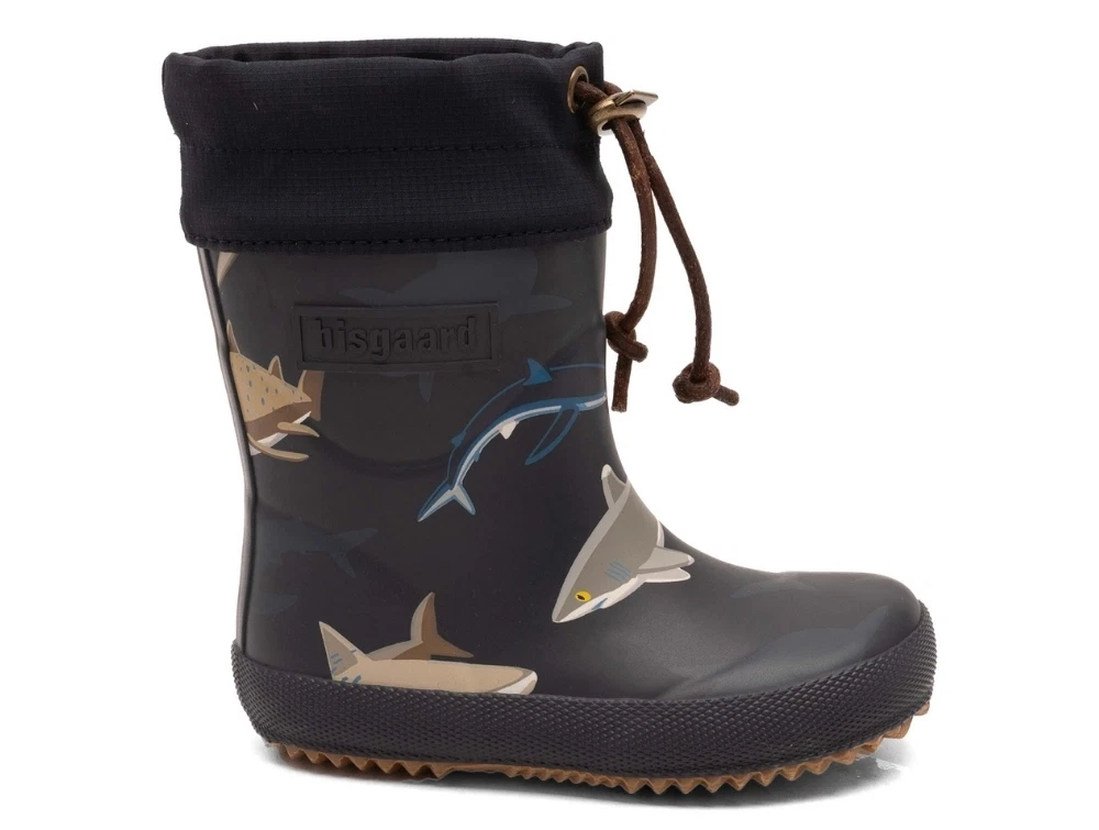 Bisgaard thermo vintergummistøvle blå med hajprint og uldfoer