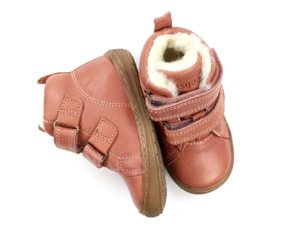 Vinterbegyndersko i farven nude fra Bisgaard i læder med velcro.