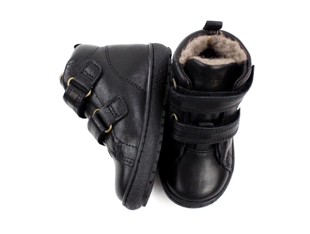 Sorte vinterbegyndersko fra Bisgaard i læder med velcro.