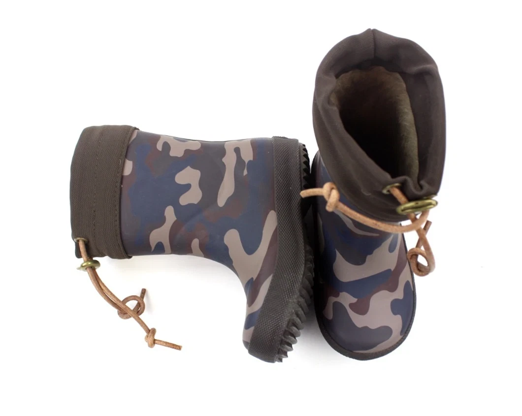 Vintergummistøvler med armyprint fra Bisgaard med varmt foer. Gummistøvlen er 100% vandtæt og har et varmt lammeuldsfoer af 60% uld og 40% polyester.