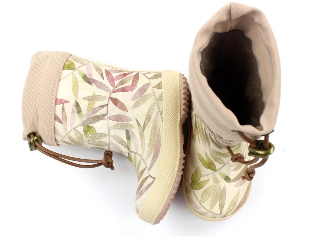 Bisgaard vintergummistøvle beige leaves med uldfoer
