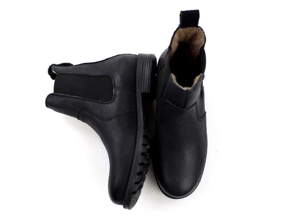Sorte vinterstøvletter i læder fra Bisgaard med elastik i begge sider.