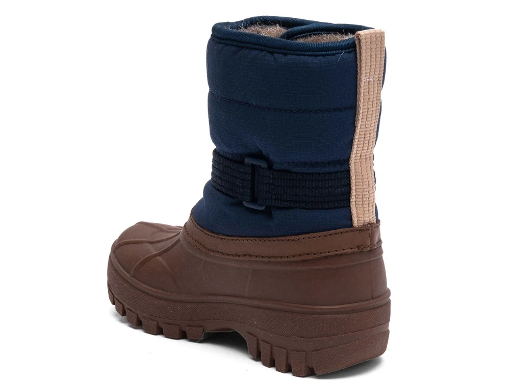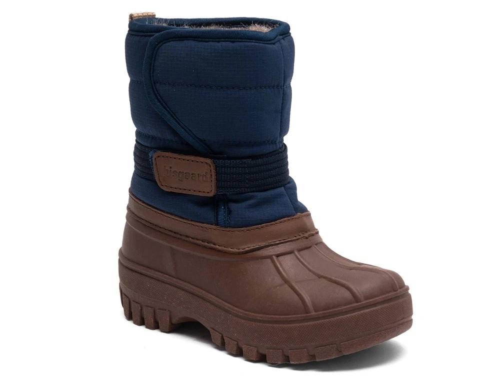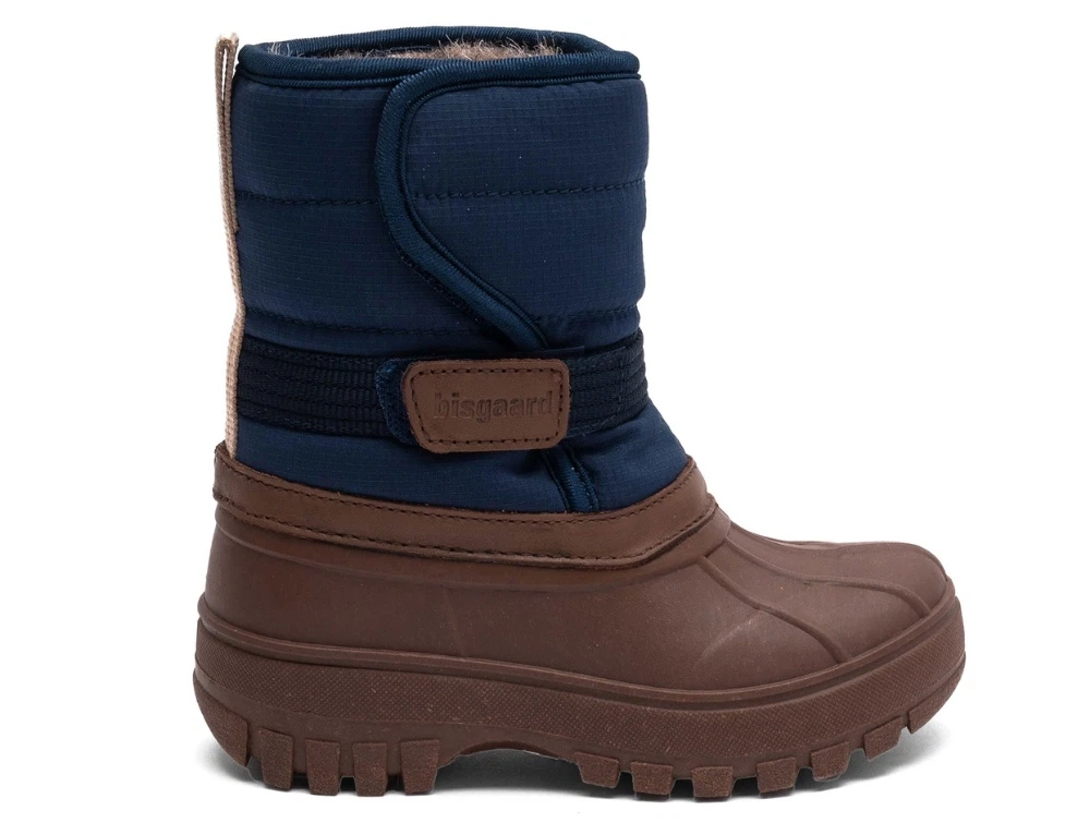 Bisgaard Pacson snestøvle navyblå er en varm og praktisk vinterstøvle til børn. Den kombinerer mørkeblåt tekstil med en mat overflade og en solid brun TPR-ydersål, der giver klassisk snestøvle-look og pålidelig beskyttelse i vintervejr.