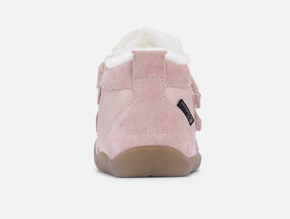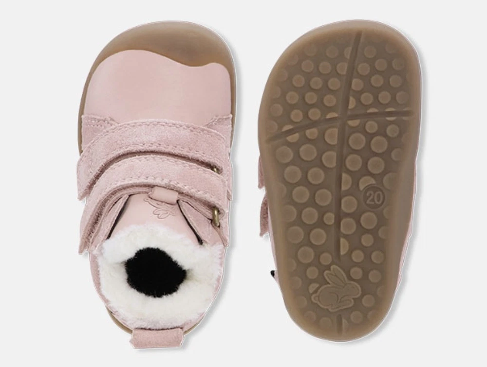 Bundgaard Bloom er vinterudgaven af den kendte begyndersko Petit og kommer her i en kombination af rosa læder og ruskind. Modellen er skabt med fokus på små børns fødder, hvor naturlig bevægelse og høj komfort er i centrum. Den brede front giver god plads til tæerne, mens en fast hælkappe sørger for stabilitet. Indvendigt er skoen foret med blød uld, som holder fødderne varme i kulden, og en vandafvisende TEX-membran beskytter mod fugt udefra.