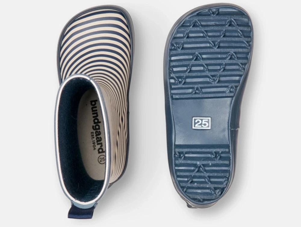 Gummistøvle med navy blå striber fra Bundgaard. Charly er en klassisk model med tidløst design og funktionelle detaljer, der gør den velegnet til leg i regn og vådt vejr.
