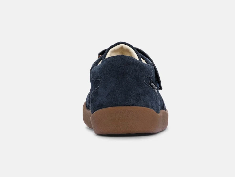Lane sneaker i blå fra Bundgaard. Modellen er lavet i blød ruskind og er designet særligt til børn med brede fødder. Skoen har et klassisk look med dobbelt velcrolukning, som gør den nem at tage af og på, samtidig med at det giver en justerbar pasform.