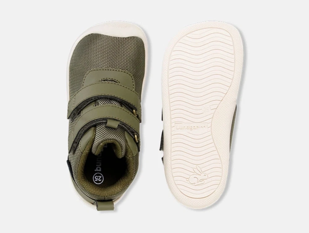 Sko i grøn (army) fra Bundgaard med dobbelt velcrolukning. Modellen hedder Moon og er en let og fleksibel, vegansk sneaker til børn, der kan gå sikkert og har styr på balancen. Overdelen er i tekstil og mikrofiber kombineret med en elfenbensfarvet ydersål, som giver et sporty og frisk udtryk.