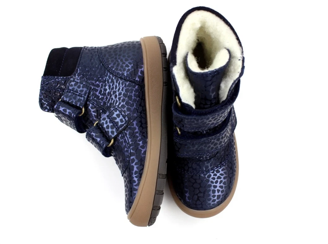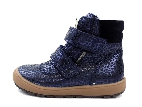 Navyfarvede vinterstøvler med metallicprint fra Bundgaard. Støvlerne har TEX-membran og 100% ægte uldfoer.