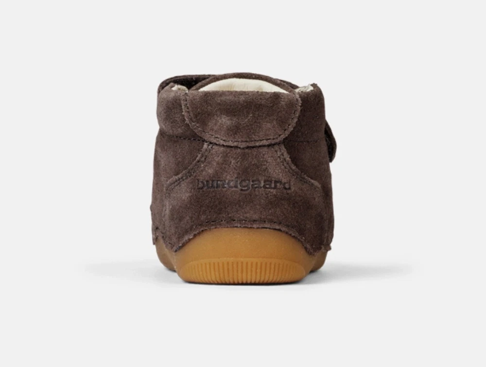 Prewalker/begyndersko i læder i brun ruskind fra Bundgaard. Petit prewalkeren fra Bundgaard er en klassisk begyndersko designet til at give de mindste god komfort, når de tager deres første skridt. Den er fremstillet i LWG-certificeret læder og har en blød, meget fleksibel TPR-sål. Indersålen er ligeledes blød og behagelig for små fødder.