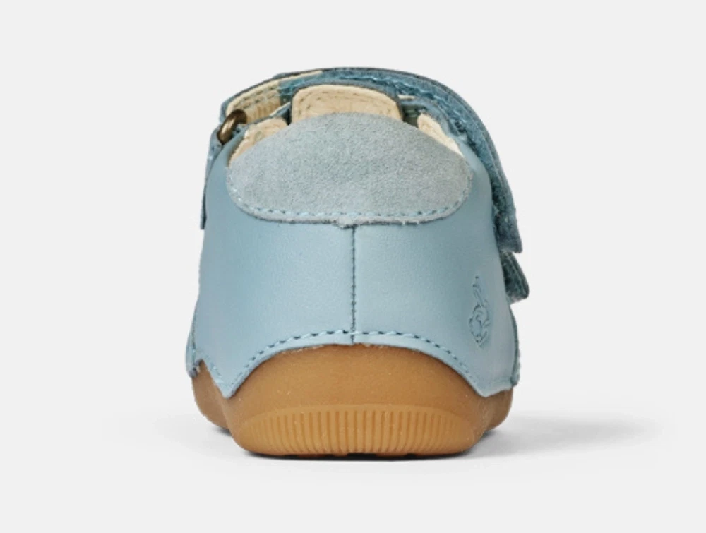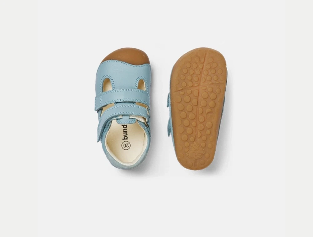 Sandal i blå nuance fra Bundgaard i modellen Petit Summer. En begyndersandal med lukket tå, der er designet til de første skridt med fokus på fleksibilitet, støtte og naturlig bevægelse.