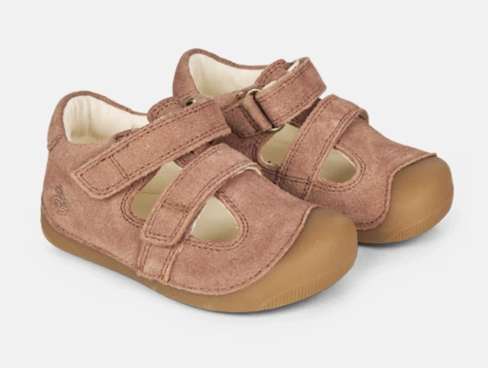 Sandal i brun nuance fra Bundgaard i modellen Petit Summer. En begyndersandal med lukket tå, der er designet til de første skridt med fokus på fleksibilitet, støtte og naturlig bevægelse.