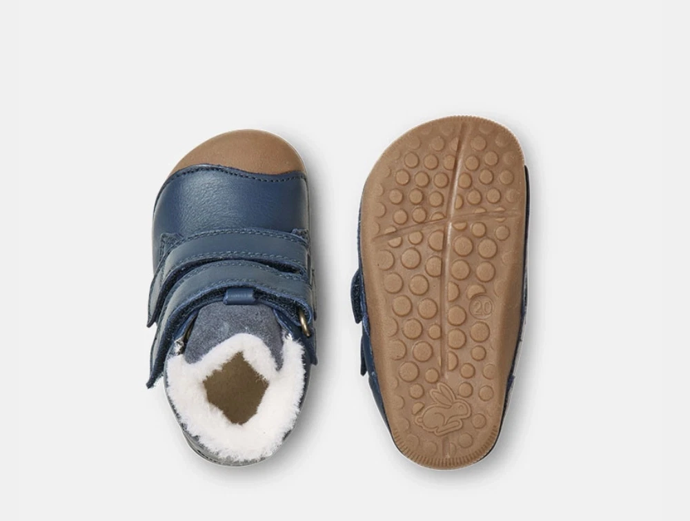 Bundgaard vinterbegyndersko i navy læder med varmt uldfoer og fleksibel sål