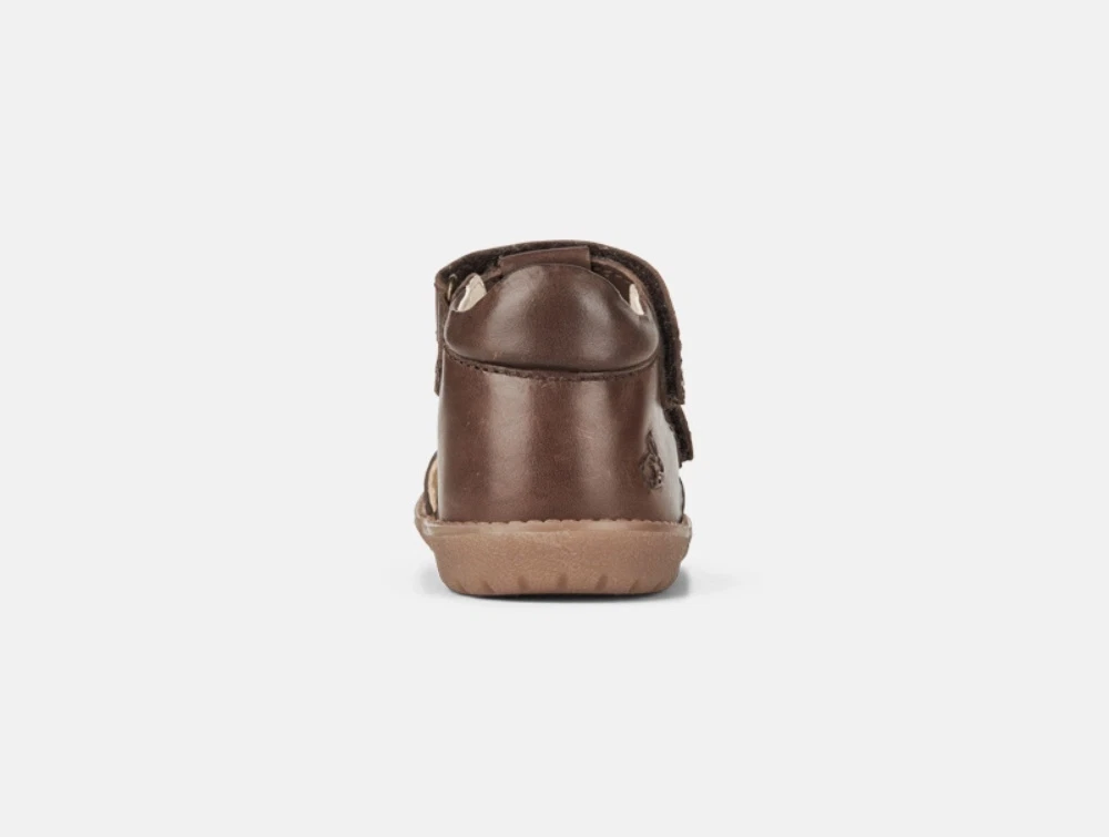 Sandal i mørkebrun nuance fra Bundgaard i læder med lukket tå og justerbar velcrolukning. Modellen har et klassisk design, som giver god beskyttelse af tæerne.