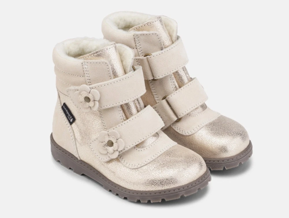 Bundgaard Tokker Flower vinterstøvle ivory glitter med uldfor og TEX membran