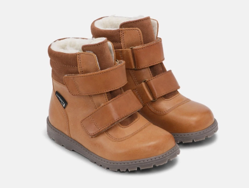 Bundgaard Tokker vinterstøvle cognac med velcrolukningBundgaard Tokker vinterstøvle cognac med velcrolukning hælkappeBundgaard Tokker vinterstøvle cognac med velcrolukning set oppefra og nedefra