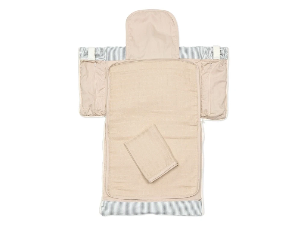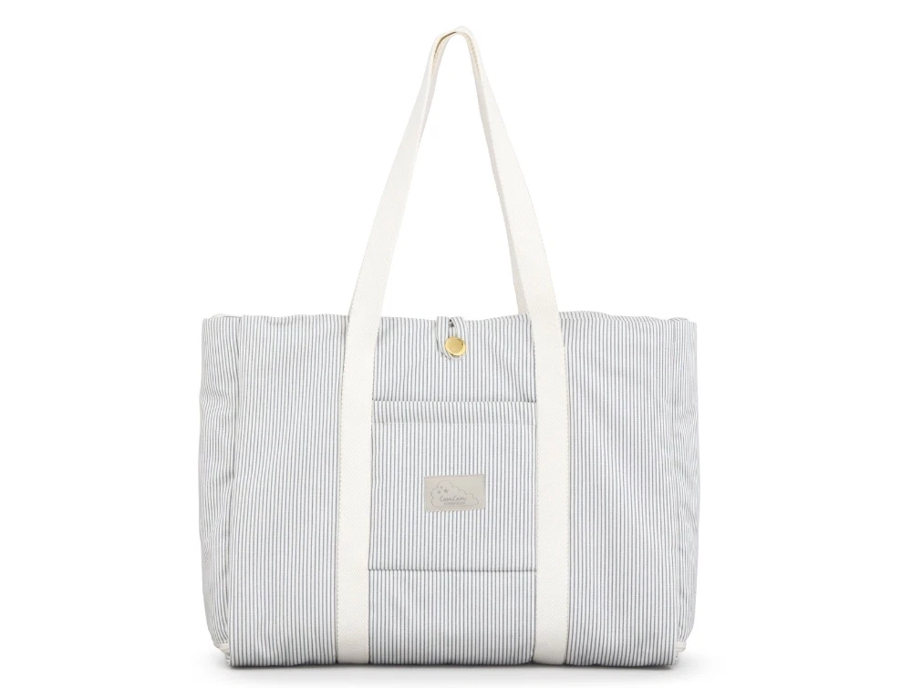 Cam Cam Copenhagen pusletaske Classic Stripes Blue i lyseblå nuance med fold-ud pusleunderlagCam Cam Copenhagen pusletaske Classic Stripes Blue bæres på skulderCam Cam Copenhagen pusletaske Classic Stripes Blue detalje