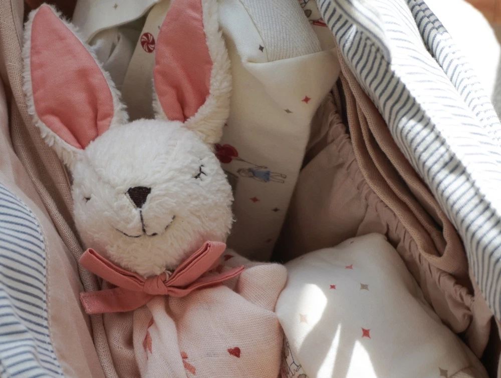 Pusletaske i lyseblå nuance fra Cam Cam Copenhagen. Tasken er fremstillet i kraftig økologisk bomuldscanvas og har et indbygget pusleunderlag, der foldes ud til fuld længde. Det quiltede design giver en blød og stabil form, mens tasken samtidig bevarer et let og elegant udtryk.