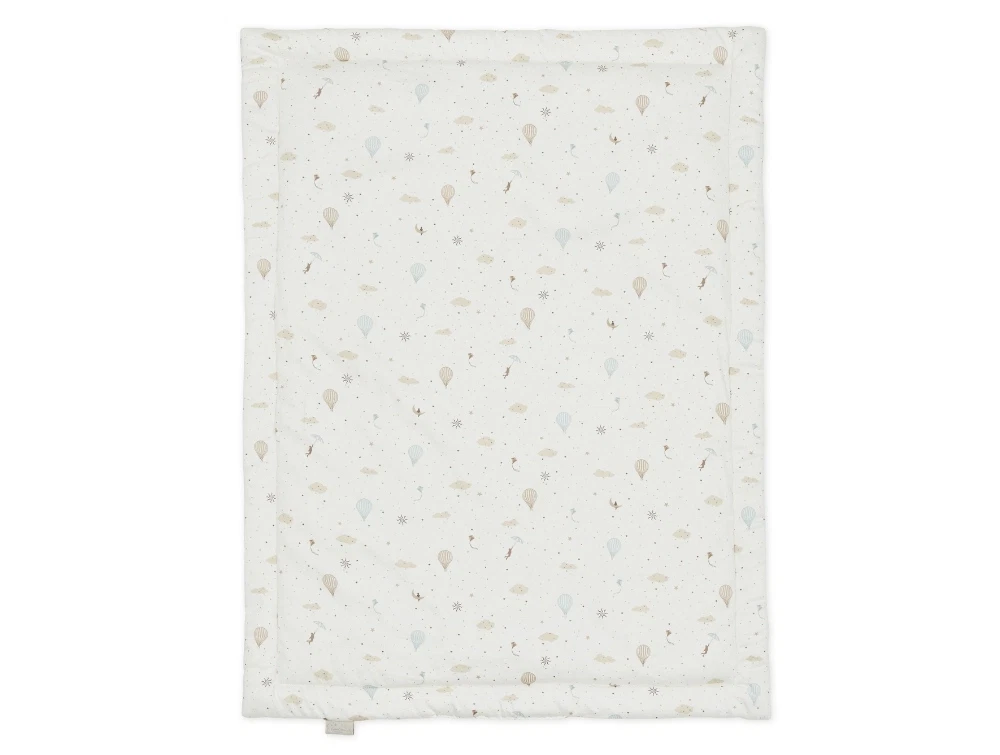 Cam Cam Copenhagen quiltet tæppe i råhvid nuance med luftballoner og skyer