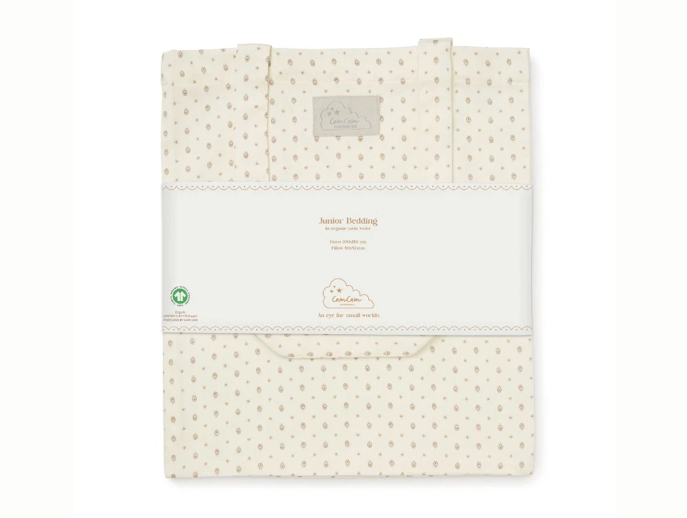 Cam Cam Copenhagen juniorsengetøj i råhvid nuance med print