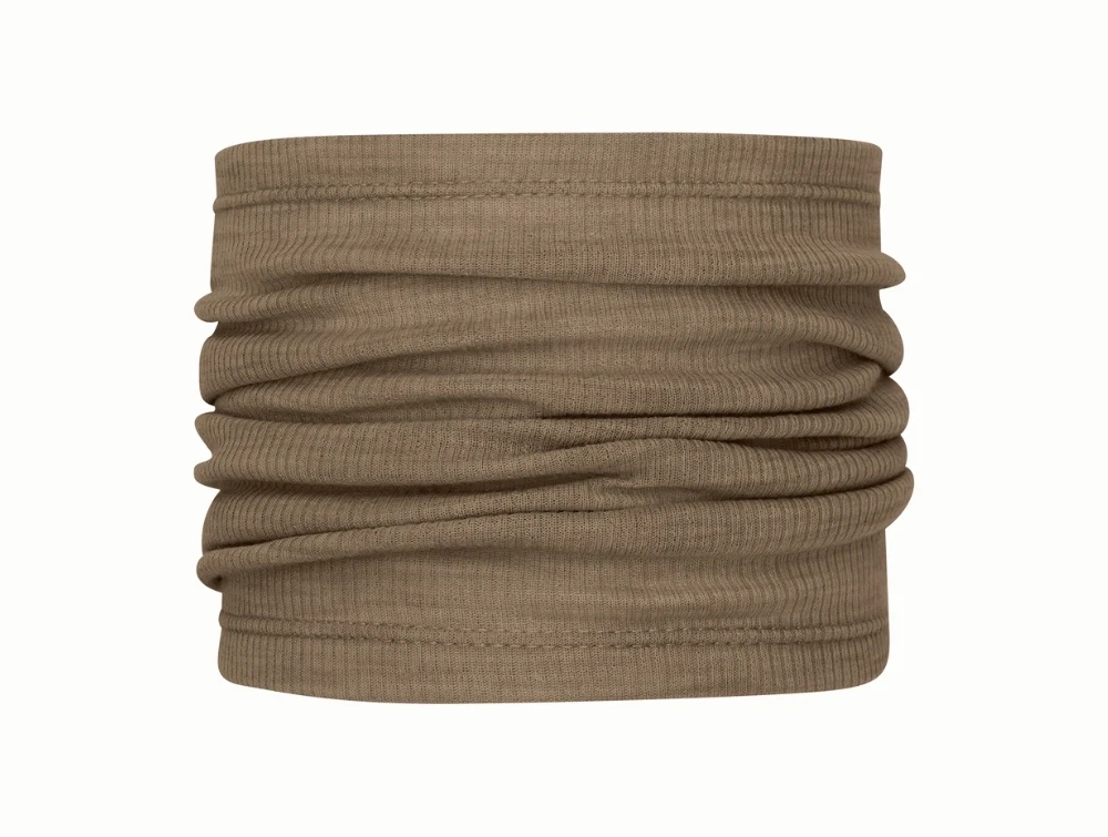 Dobbeltlags halsedisse i brun nuance (cocoa creme ) fra CeLaVi, fremstillet i blød 2x2 ribbet merinould.