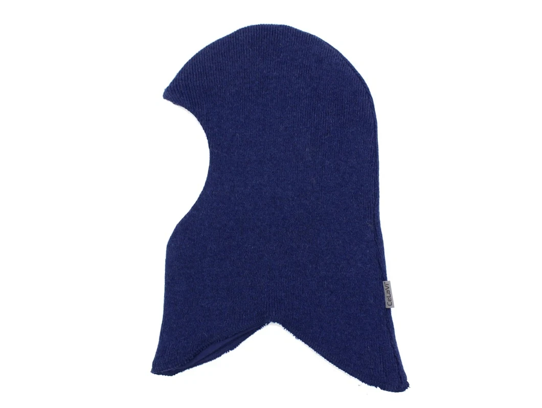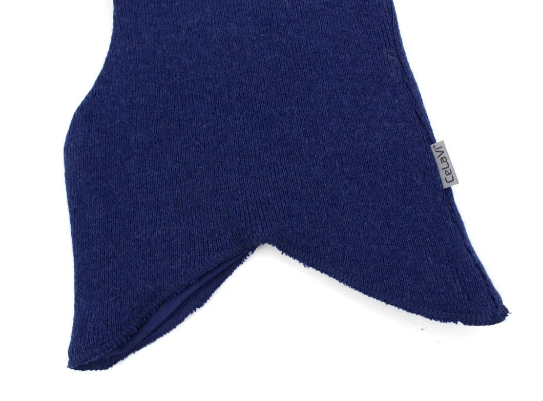 Elefanthue i blå nuance fra CeLaVi med dobbelt lag. Yderstoffet er en blanding af uld og bomuld, mens indersiden er i blød bomuld. Huen giver god varme og er behagelig mod huden.