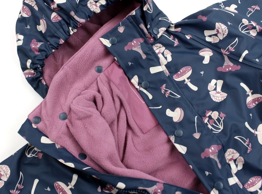 Regndragt med fleecefoer i farven reflecting pond med svampeprint fra CeLaVi.