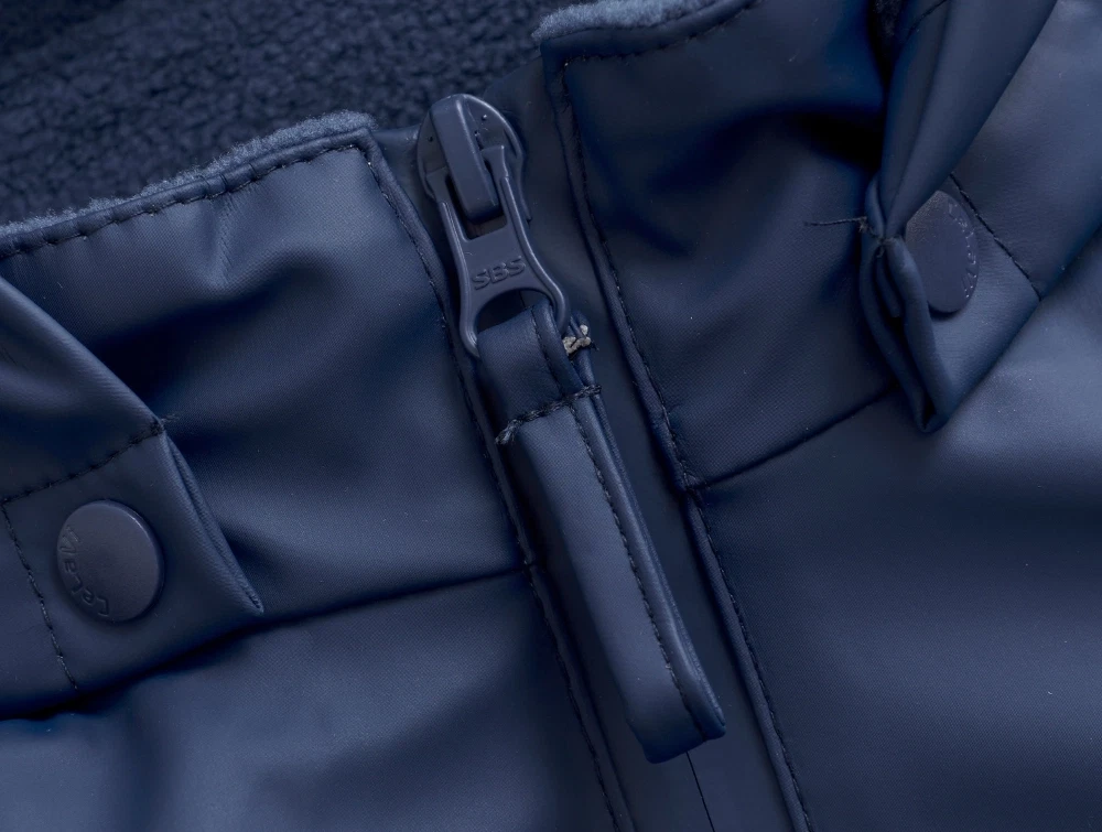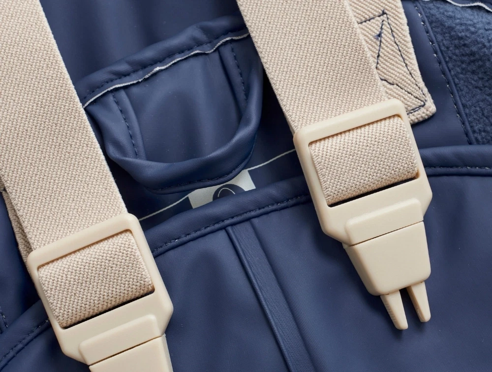 CeLaVi regnsættet har en aftagelig hætte, refleksstriber på ærmer og bukseben samt et blødt fleecefoer, som gør det ekstra egnet til koldt vejr. Bukserne har elastik ved anklerne og aftagelige fodstropper. Bemærk, at bukserne har seler op til og med størrelse 100 – fra størrelse 110 og op er der elastik i taljen og ingen seler.