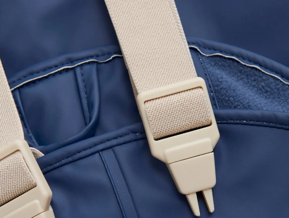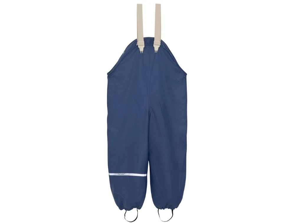 CeLaVi regnsættet har en aftagelig hætte, refleksstriber på ærmer og bukseben samt et blødt fleecefoer, som gør det ekstra egnet til koldt vejr. Bukserne har elastik ved anklerne og aftagelige fodstropper. Bemærk, at bukserne har seler op til og med størrelse 100 – fra størrelse 110 og op er der elastik i taljen og ingen seler.