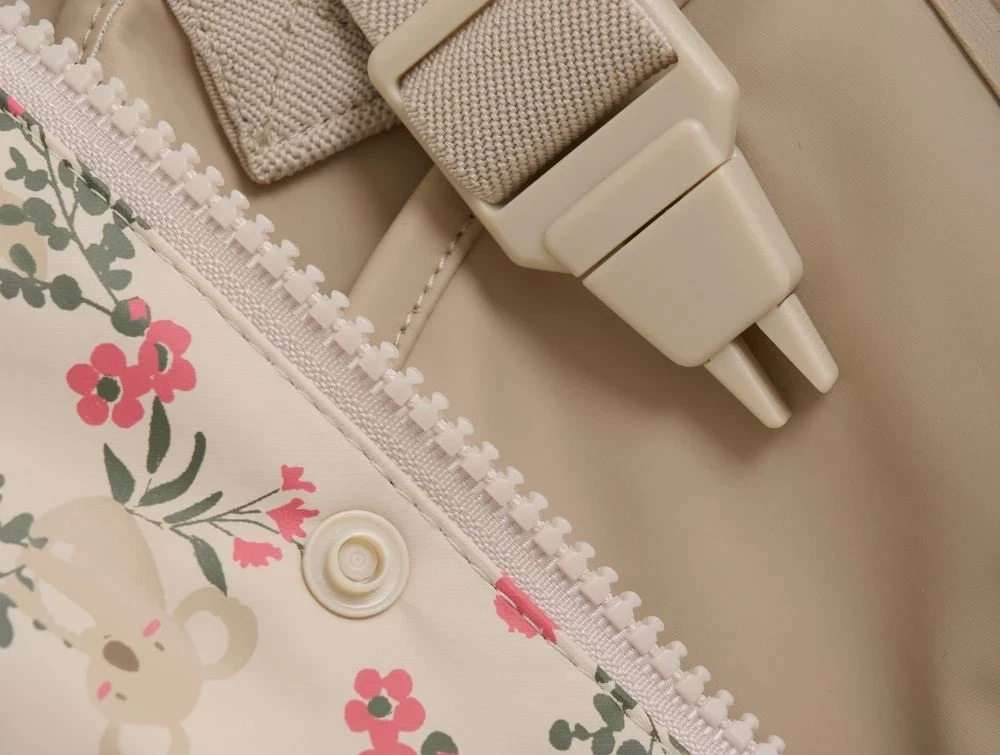 CeLaVi regnsæt i beige med blomsterprint og refleksdetaljer
