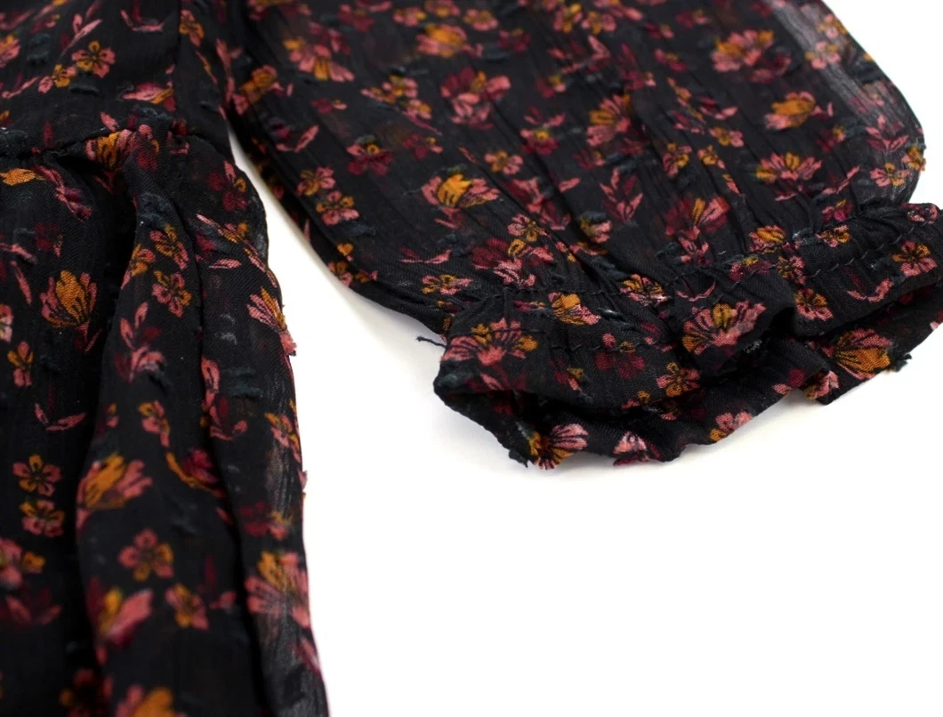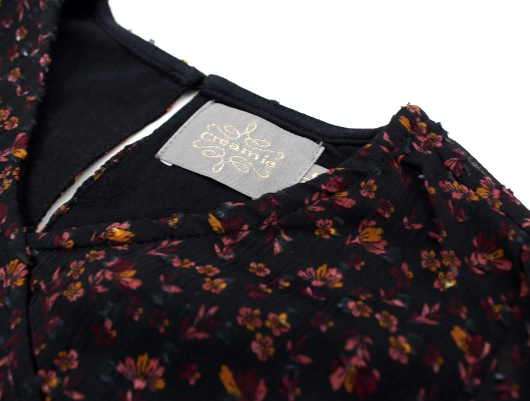 Sort kjole med blomsterprint og lange ærmer fra Creamie.
