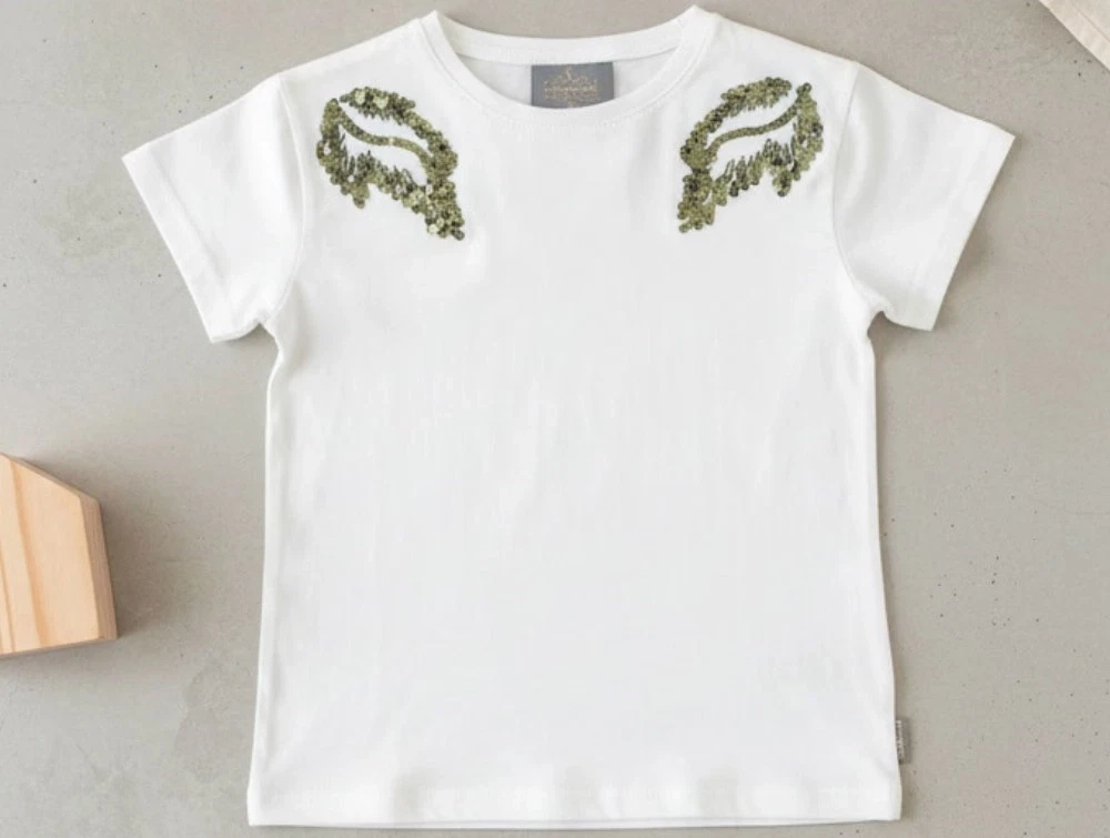 T-shirt i farven cloud med palietter i bladform fra Creamie.
