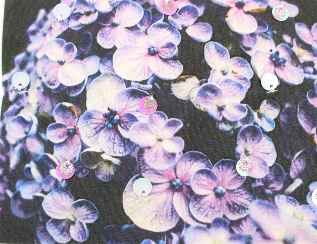 T-shirt med palietter og fotoprint af blomster fra Creamie.