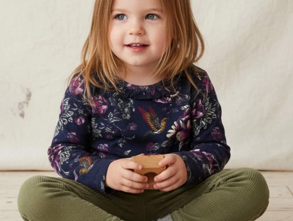 Langærmet t-shirt med flæse og blomsterprint fra Creamie.