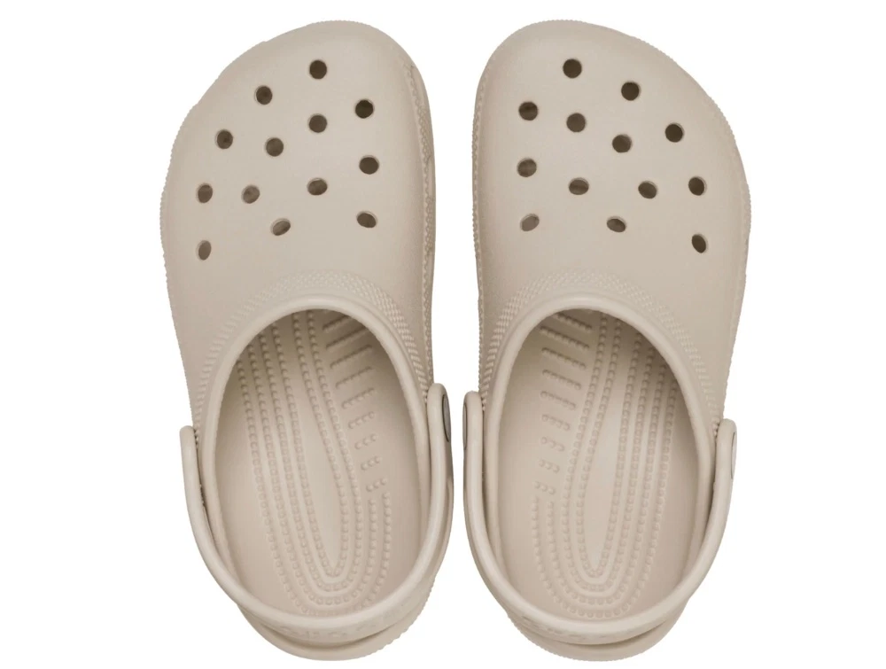Crocs Classic Clog K i beige (frappe) er en klassisk og let badesandal til børn. Skoene er fremstillet i blødt EVA-materiale, som gør dem behagelige og fleksible at have på.